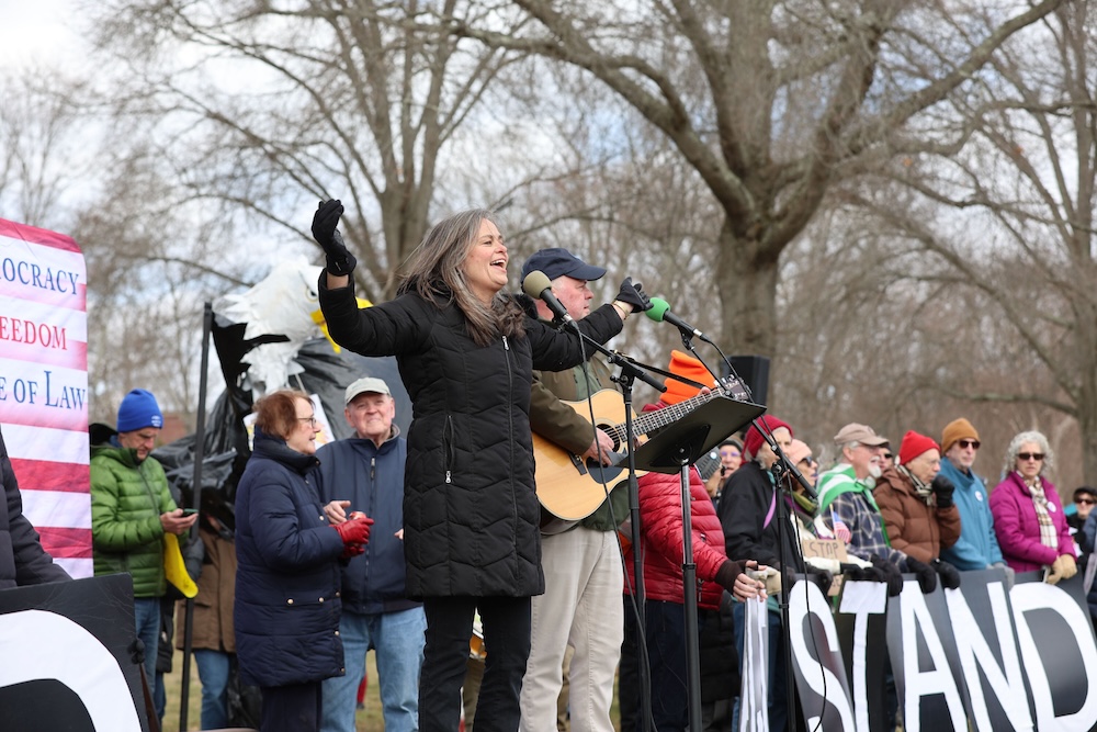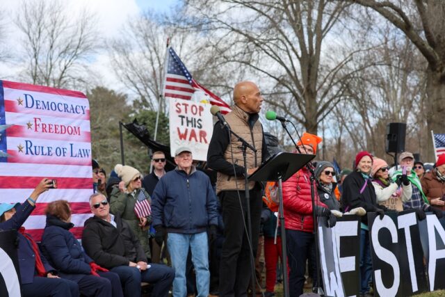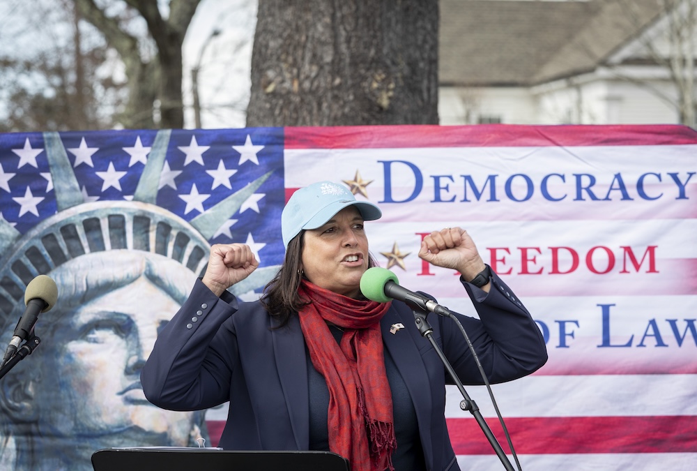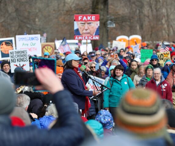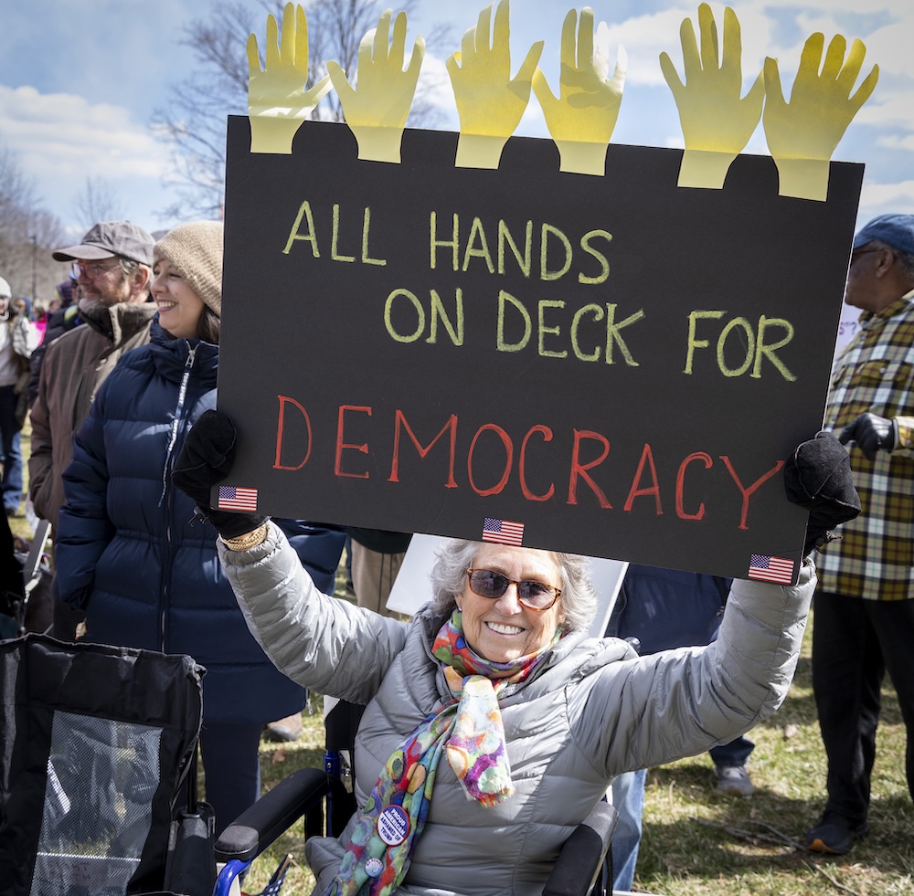 Then we will do more than end the behaviors of a would-be king, critical as that is. We will also live the democracy we deserve. That is our hope and our job. Thank you for hoping enough to show up today. Now, let’s go do the work.”