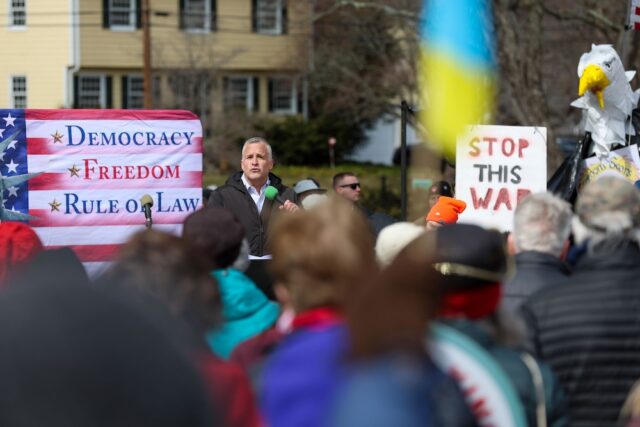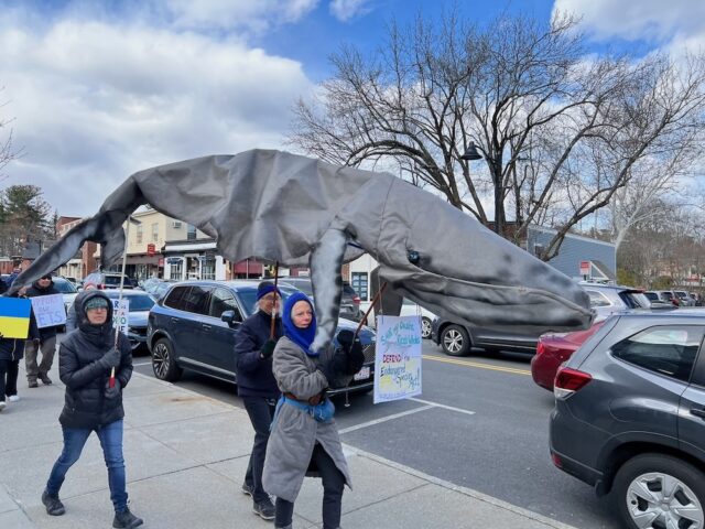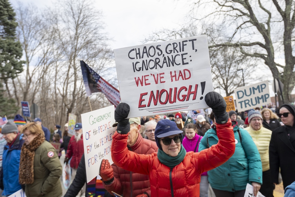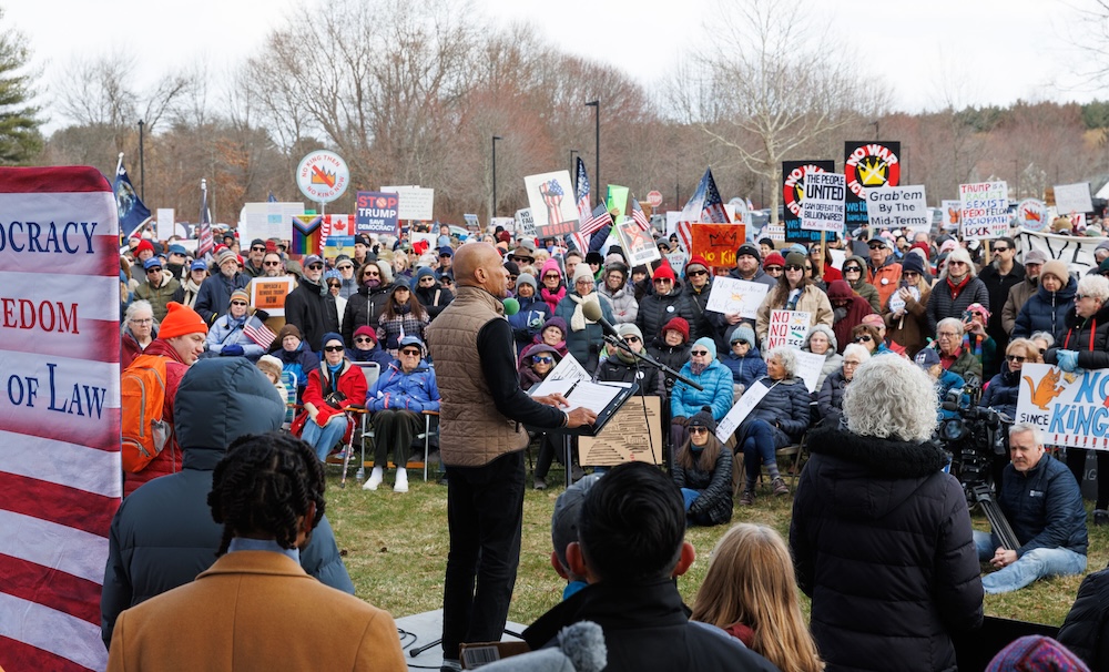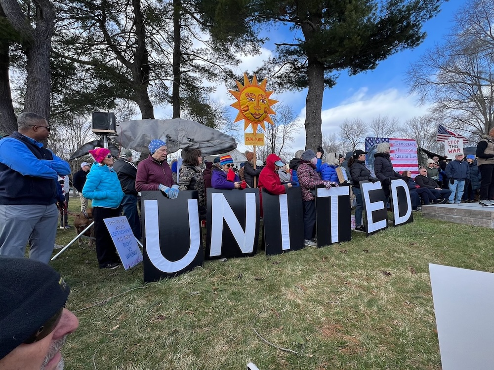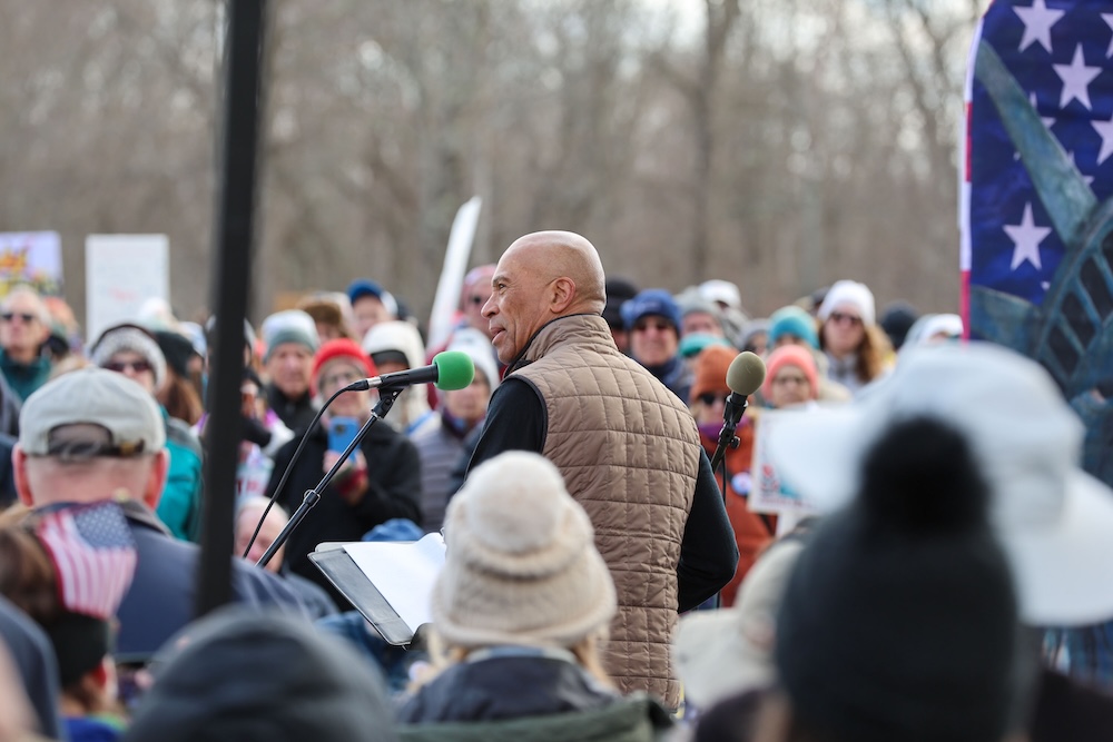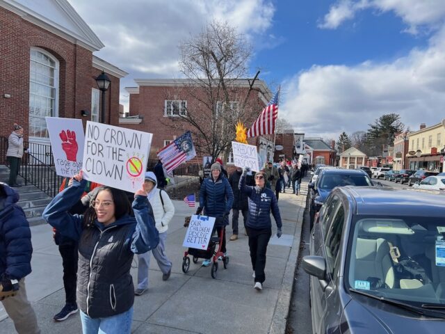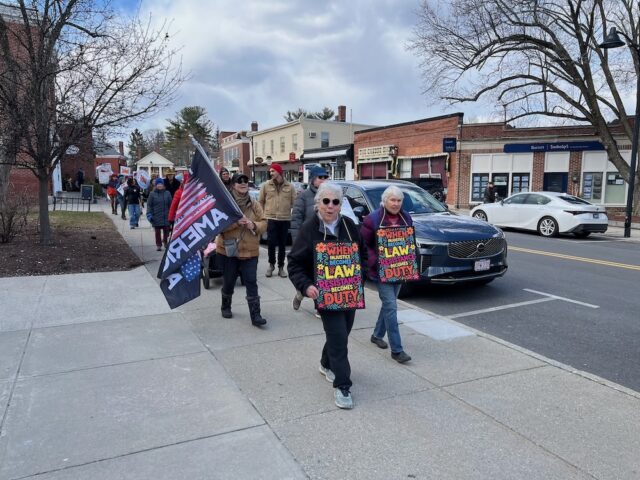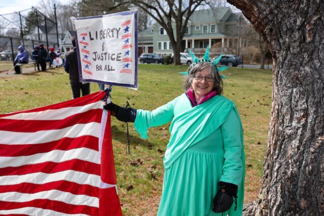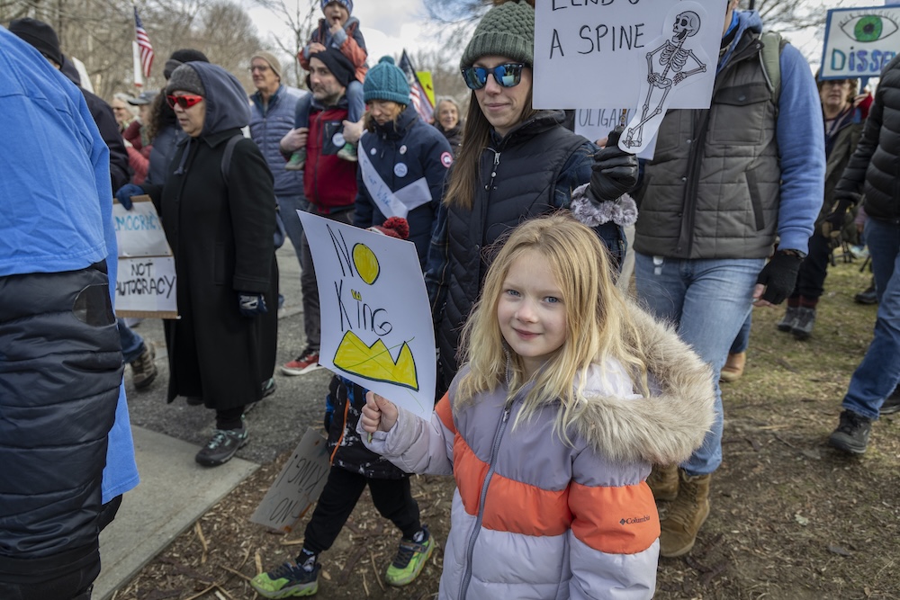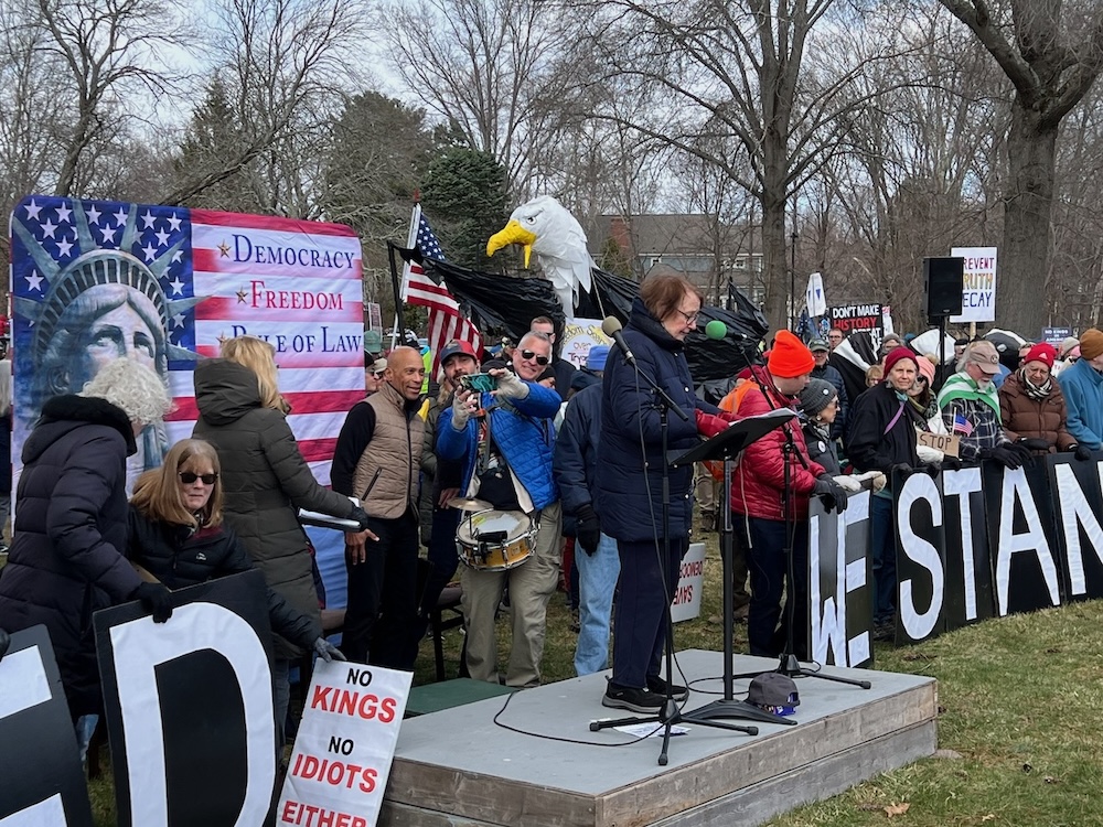 “We feel compelled to protest the tyrant, who has already destroyed so much of our great country! And in spite of that horror, there was joy in the Concord gathering – lots of kids, face painting, Deval Patrick, Rufus Gifford, and Lt. Gov. Kim Driscoll speaking. We brought hope out of the darkness!”